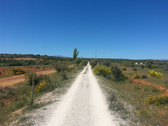 Es wurde nun so richtig warm und die Sonne brannte. Es waren kaum Pilgerer unterwegs. Ich traf nur einmal auf eine 3er Gruppe Frauen, einen Mexicaner und später nochmal eine gemischte 3 er Gruppe. Aber das Gebiet war wirklich sehr weitläufig und einsam. Außer den Pilgerern sah man sonst niemanden.