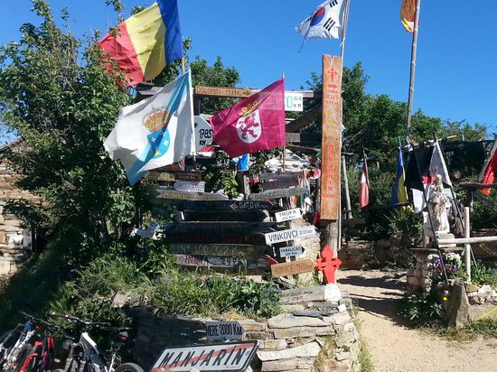 Ich blieb eine längere Zeit am Cruz de Ferro. Die Braslianerin Erika war schon verschwunden als ich wieder aufbrach, irgendwann traf ich wieder auf sie und ging wieder mit ihr zusammen durch die Berge. Kurz nach dem Cruz de Ferro kam eine kleine Unterkunft, die ein Pilger Namens Tomas mal aufgebaut haben soll. Angeblich wollte er nach Santiago pilgern und ist in der Abgeschiedenheit der Berge hier hängengeblieben.