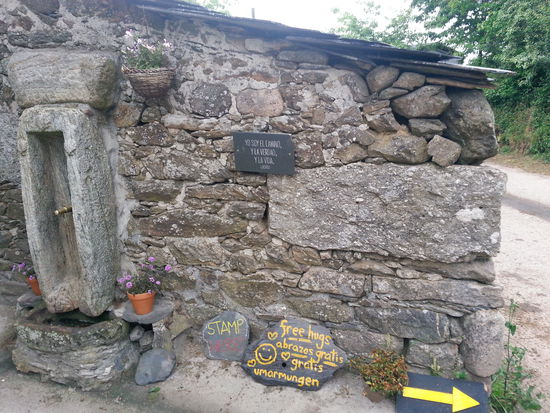 In Palas de Rei machte ich nochmal eine Pause und holte mir einen Stempel. Es galt ab nun ja jeden Tag zwei Stempel zu sammeln um die Compostella zu bekommen (falls es stimmte was man mir sagte. Vielleicht hat man mich auch einfach nur verarscht und es stimmte gar nicht, dass man bei den letzten 100 km immer 2 von diesen Dingern benötigte).