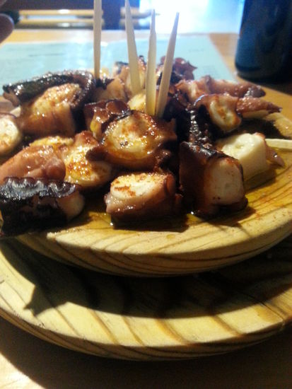 Nachdem ich meine Wäsche gewaschen und geduscht hatte ging ich raus und trank einen Wein im Straßencafe vor der Herberge. Anschließend ging ich in eine Pulperia. Zum Teller Pulpo stellte man mir eine halbe Flasche Wein. Das gehört wohl auch so dazu