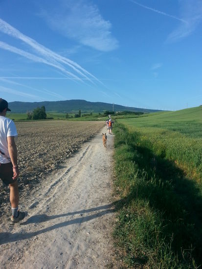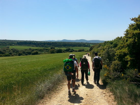 Dann gingen wir weiter. Wir kamen an eine Stelle wo für einen hier gestorbenen jungen belgischen Perigrino ein Kreuz aufgestellt wurde. Hier trafen wir auf einen weiteren Italiener und eine deutsche Frau. Es war mittlerweile heiß. Die deutsche Frau saß im Gras und sagte mir das Sie die Asche ihres verstorbenen Bruders bei sich hatte. Als ich ihr eine von meinen Orangen reichte und sie siezte blickte Sie mir in die Augen und sagte dass es auf diesem Weg keine Barrieren geben sollte und wir die Strapazen gemeinsam teilen und wir uns doch alle duzen sollten. Wie recht sie doch hatte. Auf diesem Weg gesiezt werden gleicht einer Beleidigung. Ich siezte auf diesem Weg keinen einzigen Menschen mehr!!