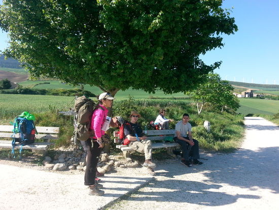 Wir gingen anschließend weiter. Durch die Hitze schlugen wir uns von Wasserbrunnen zu Wasserbrunnen. In Obanus trafen wir auf einem Perigrino der uns bestätigte, dass es nur noch zirka 3,5 km bis nach Puente la Reina sein sollte. Er hatte schon hier in einer Herberge eingecheckt und bemerkte, dass wir fertig aussahen.