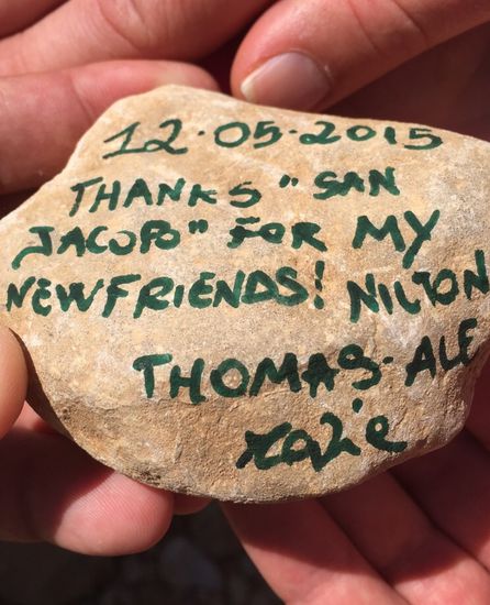 Waren wir nicht bis hier ein eingeschworenes Team waren wir es spätestens beim Abstieg. Maria nahm einen Stein und schrieb es auf