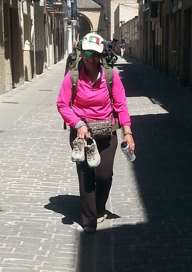 In Puente la Reina kamen wir tatsächlich auf dem letzten Loch pfeifend an. Der Ort zog sich auch noch. Maria konnte nur noch auf Socken gehen.....