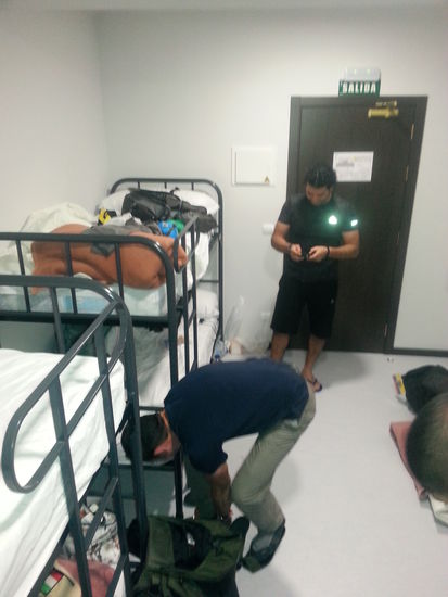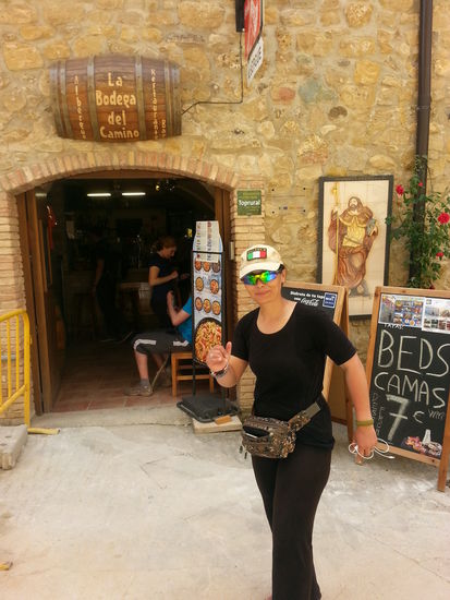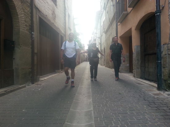 .....so kamen wir spät in Estrella an. Wir kamen direkt am Ortseingang an einer schönen Altstadtstraße zur städtischen Herberge an. Sie war leider voll und das war echt schade, da ich schon einen Blick in den Innenhof werfen konnte und ich einige bekannte Gesichter erblickte. Außerdem hatte die Herberge einen wirklich schönen Innenhof. Die Herbergsfau hatte aber leider nur noch drei Betten frei. So gingen wir wieder auf die Straße und trafen vor der Herberge auf Jatzek aus Roncesvalles. Neben Jatzek standen noch das ein oder andere bekannte Gesicht, unter anderem ein älterer Schweizer der mich vertraut begrüßte und ein rumänisches Paar Ende 20. Der Rumäne bot uns an ein Bett frei zu machen und im Bett seiner Freundin mit zu schlafen. Echt nett, aber die anderen wollten es noch eine Herberge weiter versuchen. So gingen wir weiter und kamen zu der Alberque Capuchinos Rocamador. Es war eine sehr große und ziemlich sterile Unterkunft. Wir hatten ein 6 Mannzimmer. Es waren noch 2 Radfahrer aus Ecuador mit dabei.