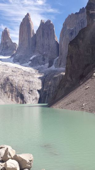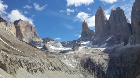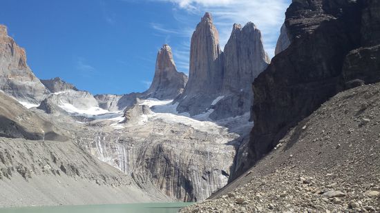 In den ersten Tage habe ich zusammen mit Christian- einem Bekannten aus Deutschland- Touren unternommen. Wir hatten uns im März 2015 im Skiurlaub flüchtig kennengelernt. Als wir uns damals auf der Almhütte über unsere noch völlig unkonkreten Südamerika-Pläne austauschten und rumwitzelten, dass wir uns dort treffen werden, habe ich weder daran geglaubt, dass er oder ich tatsächlich nach Südamerika gehen, geschweige denn, dass ein Treffen am anderen Ende der Welt tatsächlich Realität wird. Aber so kam es tatsächlich und er konnte sein Praktikum in Córdoba (Argentinien) für ein paar Tage unterbrechen, um zu reisen. So haben wir zunächst El Calafate und Umgebung zu Fuß erkundet, einen Reitausflug durch die patagonische Steppe unternommen, den Perito Moreno Gletscher bestiegen und dann die berühmten "Torres" im chilenischen Nationalpark "Torres del Paine" ("Die Türme des blauen Himmels") in einer an meine körperlichen Grenzen gehende Tageswanderung erklommen.
