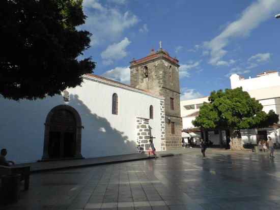 Die Pfarrkirche Mariahilf steht an der Plaza de España - Das Äußere läßt kaum eine Kirche vermuten, vor allem da Ende des 17. Jh. auch noch ein Glockenturm angebaut wurde, der mehr wie ein Wehrturm wirkt.