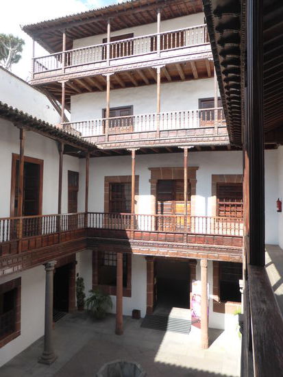 Ein weiteres Haus mit Natursteinfassade ist die Casa Principal de Salazar aus dem 17. Jh. mit Elementen der Renaissance und des Barock. Türen und Fenster verteilte der Baumeister unregelmäßig über die Fassade, die barocke Vorliebe für die Symmetrie hatte noch nicht Einzug gehalten. Über dem mächtigen Eingangsportal steht auf dem Familienwappen zu lesen: »Soli Deositgloria« (Nur Gott allein sei Ehre). Dies war der Leitspruch von Don Ventura Salazar de Friaas (1601-69), Erbauer des Hauses und Mitglied des Ritterordens von Calatrava. Die Inselregierung ließ den Palast restaurieren und machte ihn Besuchern zugänglich. Steinsäulen tragen die untere Ebene der dreistöckigen hölzernen Galerie im Innenhof, für die beiden höheren Ebenen genügen stützende Holzpfeiler. Ein solcher Patio charakterisiert alle älteren Stadtpaläste. Er diente der Familie und den Bediensteten als bevorzugter Aufenthaltsort. Im Parterre lagen Weinkeller, Lagerräume und bei sehr reichen Leuten auch Pferdeställe sowie die Kutschengarage. Die Herrschaft wohnte im Obergeschoss. Besonders prächtig präsentiert sich der ehemalige Prunksaal zur Calle O'Daly hin mit seiner reich verzierten, hoizgeschnitzten Tür und der Artesonado-Decke. Spürbar intimer ist das rückwärtige Speisezimmer. Vermutlich war es seinerzeit dem engeren Familienkreis vorbehalten. eb.