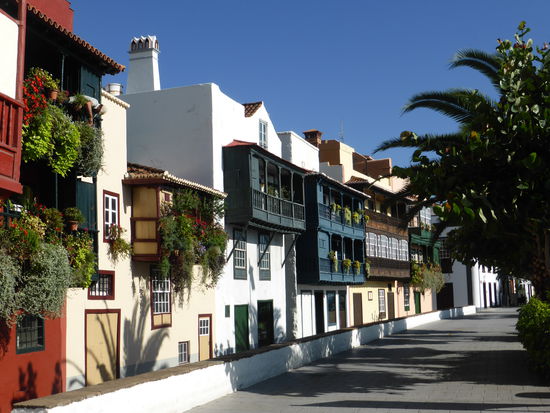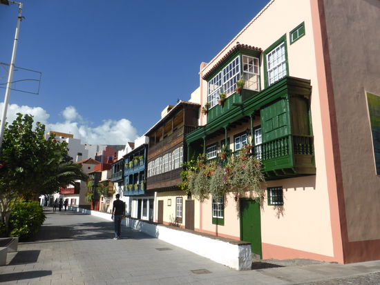 Das Zimmermannshandwerk erreichte auf La Palma ein hohes Niveau. Ihren Höhepunkt erreichte diese Kunst mit den viel fotografierten Casas de los Bal-cones in Santa Cruz. Sie reihen sich entlang der Avenida Maritima, zwischen dem Durchgang von der Placeta de Borrero und der Calle Tedote. Ursprünglich waren die teilweise über zwei Stock-werke reichenden, nach arabischem Vorbild gefertigten Balkone durch ein feines, hölzernes Gitterwerk verschlos¬sen. Dieses sollte nicht etwa vor Blicken schützen oder zur Zierde dienen. Viel¬mehr verbargen sich dahinter die Wirt -schaftsräume, in denen Getreide luftig aufbewahrt wurde und der Wasservorrat vor Verdunstung sicher lagerte. Die heute als Schokoladenseite empfundene Meeresfront der Balkonhäuser wies früher zum kiesigen Strand, da es die Avenida Maritima zur Erbauungszeit im 16./17. Jh. noch nicht gab. Der Vordereingang befand sich, von Wind und Atlantikgischt abgewandt, an der Calle Perez de Brito.
