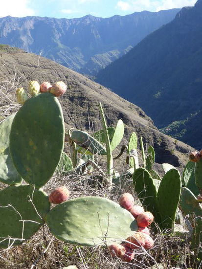 er bietet ein tollen Blick über die Westküste südwärts auf den Barranco de las Angustias - im Hintergrund Los Llanos und El Paso