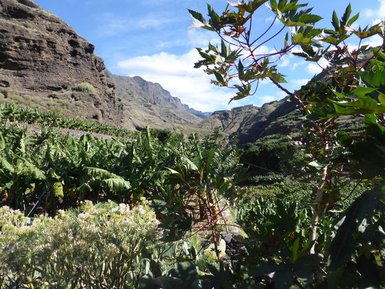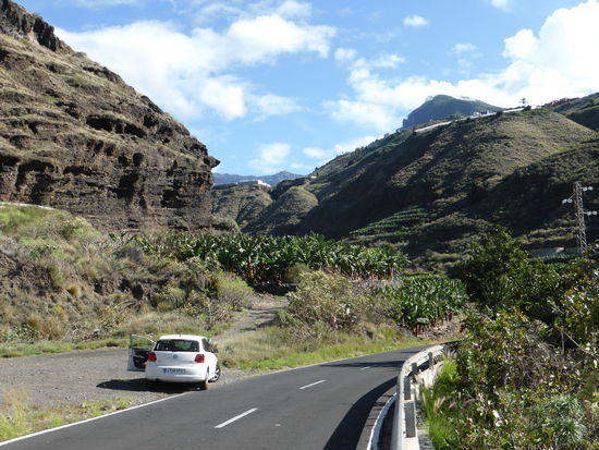 Je weiter man ins Tal fährt, umso mehr wird man von Bananenplantagen umgeben.