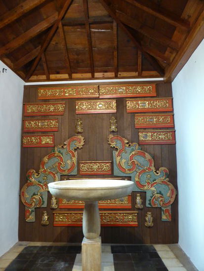 das schöne Retabel geht ungewöhnlicherweise eher in die Breite als in die Höhe - eine flämische Arbeit aus dem 16. Jh.