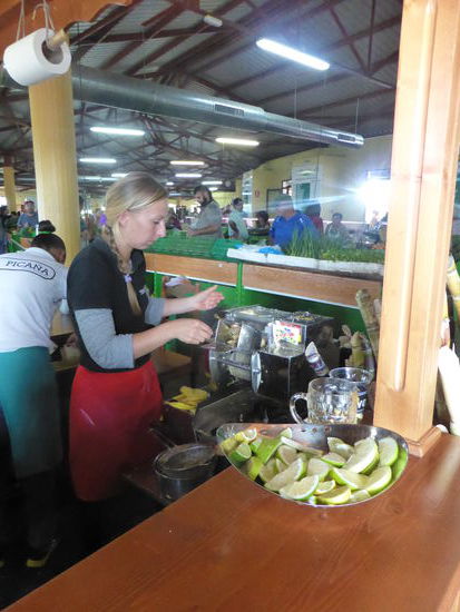 Im Markt werden überwiegend Bioprodukte aus der Gegend angeboten. Aus der deutschen Kolonie der Aussteiger gibt es auch einige Produkte, z.B. hausgemachte Kuchen deutscher Provinienz. Aber auch heimischer Tabak wird noch per Hand nach alter Tradition zu Zigarren gerollt. Traditionsgemäß - es gab früher zu hauf Zuckerrohranbau - kann man an einem Stand auch frisch gepreßten Zuckerrohrsaft probieren, der u.a. auch zu Mojito gemixt wird.