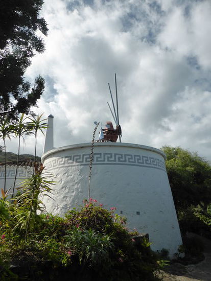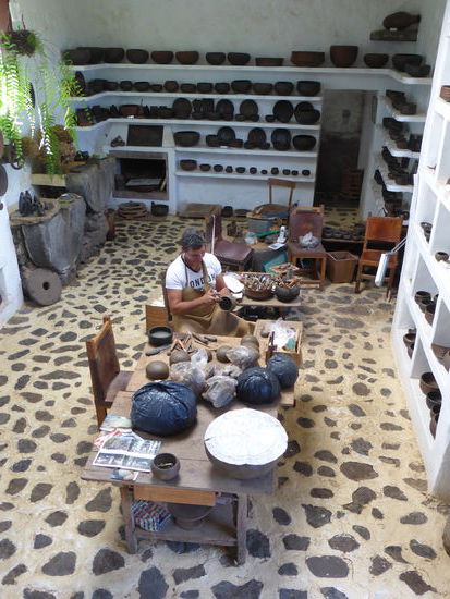Wir entschließen uns an der Ostküste zu bleiben, da es bis auf die Bergspitzen auch dort sonnig ist. Auf der Straße LP206 fällt Ulrike den auf, das wir auf der unteren der LP2 eine Höhle und das archäologische Museum hätten sehen können. Daher suchen wir mithilfe von Luise eine steile abenteuerliche Verbindung zur unteren Straße, müssen dann aber feststellen, dass das Museum mit Höhle bereits um 15.00 Uhr schließt, obwohl im Führer andere Zeiten angegeben sind. Für die Casa Roja müssen wir dann wieder auf die obere Straße, um auch dort das Gleiche festzustellen. Nun bleibt nur die Hoffnung, dass die Keramikwerkstatt noch geöffnet hat. Dazu wieder nach unten!