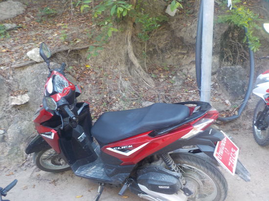 Geschlafen haben wir super, obwohl mir zeitweise wirklich richtig kalt war, da die Klimaanlage ganze Arbeit geleistet hat. Heute wollen wir die Insel mit einem Roller erkunden. Ausgeliehen für 200 Baht, also umgerechnet ca. 5 € !!! Unfassbar - aber wahr! Inklusive Benzin!