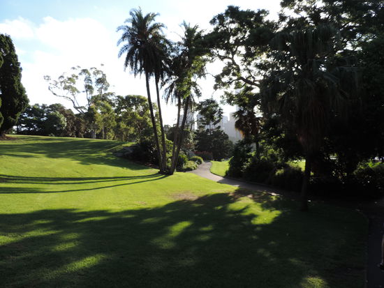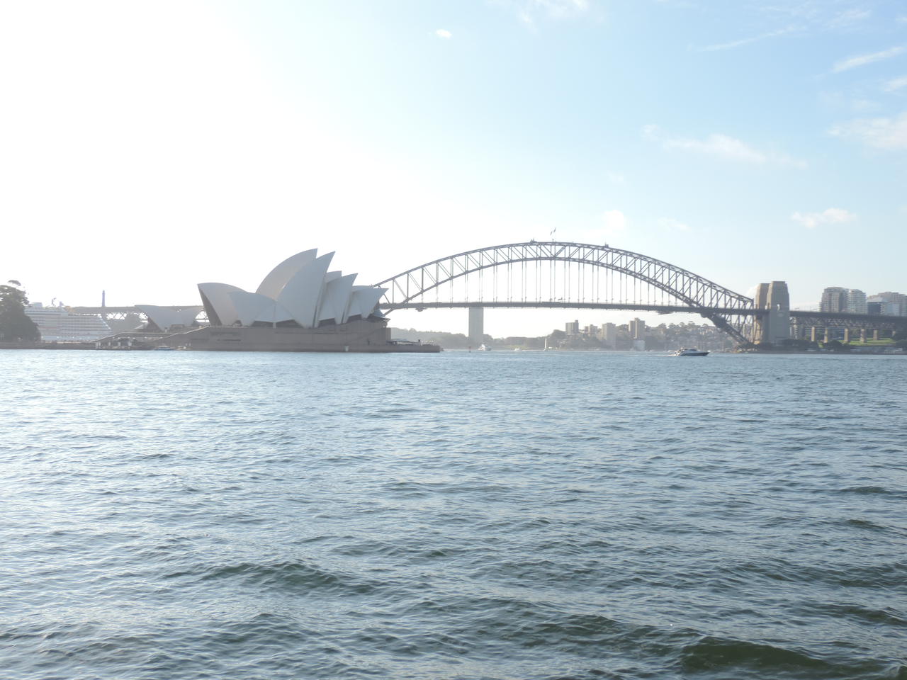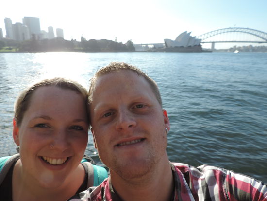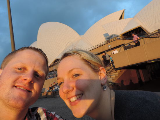 Wir bezahlen unser Zimmer und bekommen unseren Schlüssel. Das Hostel ist sehr groß. Meint man garnicht, wenn man davor steht, aber nach hinten raus sind noch einige Zimmer und ein Hinterhof. Wir haben ein 3-Bett-Zimmer für uns mit eigenem Balkon und eigenem Kühlschrank. Echt cool! Sieht auch alles ganz sauber aus. Ich möchte direkt zum Opera House. Bloß nicht einschlafen! Wir packen grob unsere Sachen aus und richten uns etwas ein, dann gehen wir los. Keine 400 Meter gelaufen, fängt es von jetzt auf gleich an zu schütten! Wir sind so überrascht, das wir erstmal nicht wissen, ob wir einfach weiterlaufen sollen, oder doch lieber umdrehen. Wir drehen um! Im Hostel angekommen, sind wir klitschnass. Jetzt wissen wir, kaputt wie wir sind, nichts mehr mit uns anzufangen. Da ist Schlafen die einzige Möglichkeit Nach 3 Stunden wachen wir wieder auf - total fit! Wir versuchen es nochmal. Also Schuhe an und auf zum Sydney Opera House. Am Royal Botanik Garden und am Mrs Macquarie's Chair vorbei, mit einem ersten super genialen Ausblick auf das Opera House und die Harbour Bridge! Dann stehen wir auf den Stufen des Opera Houses - Ich kann garnicht glauben das ich hier bin! Das ist wie im Traum. Da hat man solange darauf gewartet, endlich mal hier zu sein, auf den Stufen des Sydney Opera Houses zu stehen und sich Bilder in Büchern, Zeitschriften und im Internet angesehen und jetzt mache ich mein erstes eigenes Foto! Total cool und wirklich unfassbar! Hier bleiben wir noch etwas sitzen...