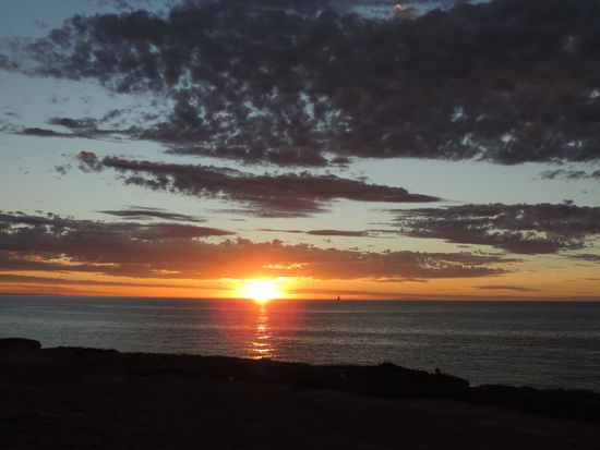 Heute morgen haben wir uns eine Tasse Kaffee mit an den Strand genommen. Es war noch etwas frisch, da wir erst 7 Uhr hatten. Die Sonne kämpfte sich gerade ans Himmelszelt und der Sand war noch ganz kalt. Wir nahmen das Strandhandtuch mit und genossen das Panorama. Da wir beide heute keine Lust mehr hatten uns noch die Ingalalla Falls in der Nähe anzusehen, haben wir uns nach den Frühstück direkt auf den Weg nach Cape Jervis gemacht. Von hieraus fährt die Fähre nach Kangaroo Island und es gibt in der Nähe auch noch den Deep Creek Conservation Park. Das war es aber auch schön! Hier gibt es noch nicht mal einen richtigen Supermarkt. Das wichtigste bekommt man an der Tankstelle, vor allem Bier! Wir fuhren auf direktem Wege zur Anlegestelle. Dort überlegten wir, wann wir denn auf die Insel fahren sollen. Wir entschieden uns für Donnerstag. So konnten wir uns morgen noch den Park ansehen und hätten dann ab Donnerstag Zeit uns die Insel, und viel wichtiger, nach einer Unterkunft umzusehen. Wir buchten die Fähre und waren somit schon wieder 194$ ärmer! Den Rest des Tages verbrachten wir lesend, im Kofferraum liegend und einfach in Ruhe auf einem Parkplatz hinter der Fähranlegestelle. Wir bleiben heute Nacht hier. Von hier aus konnten wir schon auf Kangaroo Island schauen und einen grandiosen Sonnenuntergang bewundern! Als ich abends noch mit meiner Mutter telefoniert habe, schwamm plötzlich eine Herde Delfine am Strand vor uns entlang - total toll! Ich war nur leider zu langsam. Bis ich die Kamera rausgeholt hatte, waren die Tümmler schon alle wieder abgetaucht!