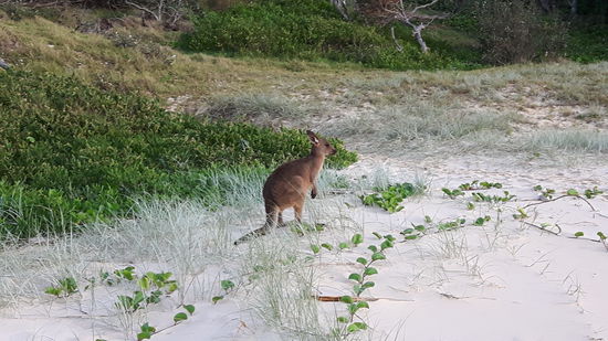 Heute morgen sind wir pünktlich zum Sonnenaufgang aus dem Auto gekrabbelt. Auf der Wiese neben dem Parkplatz, auf dem wir geschlafen haben, hockten immer noch 3 Kängurus. Wir tranken einen Kaffee am wunderschönen Strand, an dem auch 4 Kängurus rumhüpften, und machten uns dann auf den Weg Richtung Nambucca. Dort schauten wir uns den Captain Cook Lookout an und frühstückten am Shelly Beach. In Coffs Harbour machten wir nur einen kurzen Stopp am Hafen und tranken einen Kaffee to go und schleckten Eiswaffeln. Dann hielten wir noch an der berühmten Big Banana. In Red Rocks am Culture Center legten wir einen Stopp ein, da man dort Buschfood, also Känguru, Emu und Krokodil probieren kann, aber dort war leider geschlossen. Also schauten wir uns noch das Dörfchen an und fuhren weiter nach Grafton, wo wir kurz die Victoria Street entlangliefen und bei ALDI unsere Vorräte auffüllten. Unsere letzte Station war Ballina, wo wir einen günstigen und wunderschönen Campingplatz fanden, Burger zubereiteten und noch gemütlich zusammensaßen.
