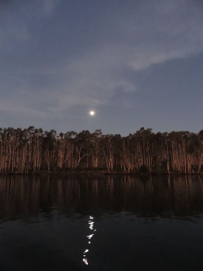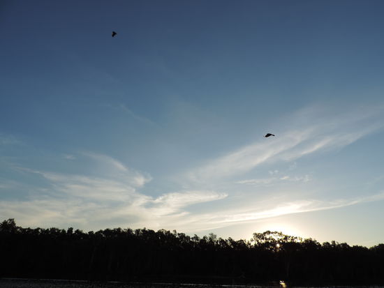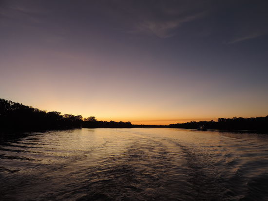Danach gings weiter zum Peregian Beach und wir waren fast wieder in Noosa. Wir stürzten uns in die hohen Wellen, die uns nur schwer wieder zum Strand zurück ließen und sonnten uns etwas. Zum späten Nachmittag hin fuhren wir zur Noosa Marina, von wo aus die Sunset Cruise startete, eine Bootsfahrt in den Sonnenuntergang zu der man sich sogar sein eigenes Abendessen und Wasser mitbringen kann! Nur Getränke kauft man on Board! Wirklich richtig schön mit wirklich sehr netter Gesellschaft. Wir setzten uns neben eine Gruppe älterer Australier, mit denen wir uns sehr gut unterhielten und bewunderten die Himmelsfarben und eine Kolonie von Flughunden, die über uns hinwegflog.