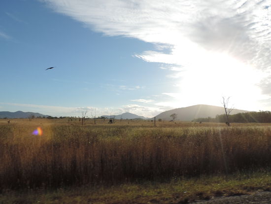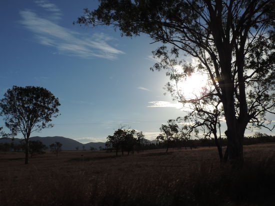 Dann holte uns der große Hunger ein. Wir machten uns im Park etwas zu Essen und entschieden, dass wir noch etwas weiterfahren, da wir nicht schon wieder für den Schlafplatz bezahlen wollten. Erst hatten wir uns einen Campground rausgesucht, aber dann fuhren wir doch bis Rockhampton durch, an wunderschönen Landschaften vorbei, angestrahlt von der untergehenden Sonne! Wir riefen Vincent, einen Freund meines Bruders, an, der hier seit einem Jahr ein freiwilliges Jahr absolviert. Wir freuten uns tierisch ihn wiederzusehen! Er wohnt in einer WG und bot uns an, dass wir eins, zwei Nächte hier bleiben können.