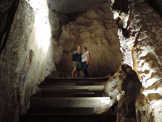 Am nächsten Morgen packten wir unsere Sachen zusammen. Wir waren 2 Nächte hier und fanden es sehr schön, aber länger wollten wir die Gastfreundschaft dann nicht ausreizen. Wir fuhren durch Emu Park, aber dies war wieder so ein Ort, wo einfach nichts los ist, also gings weiter nach Yeppoon. Dort gab es einige große Geschäfte, eine Einkaufsstrasse und den Strand in der Nähe. Hier schauten wir uns etwas um. Da es aber nicht so viel zu sehen gab, entschieden wir uns noch die Capricorn Caves anzusehen, eine Kalksteinhöhle nördlich von Rocky. Wir machten die Führung um 3 Uhr mit und wurden durch die Höhlengänge bis in eine "Cathedrale" geleitet. Dort findet 2x jährlich "Opera in the Caves" statt. Außerdem kann man dort heiraten. Diese "Cathedrale" sah also aus wie eine Kirche und auch die Akustik erinnerte daran. Unser Guide sang uns ein Lied vor und spielte auch noch Adele's "Hello", während sie das Licht ausschaltet und wir im Dunkeln da saßen und der Musik lauschen konnten. Dann gingen elektrische Kerzen an und rote Scheinwerfer an der Decke. Das ganze war schon eine tolle Atmosphäre! Die Tour dauerte 1 1/2 Stunden und als wir wieder am Parkplatz ankamen suchten wir uns eine passende Rest-Area in der Nähe, wo wir uns etwas zu Essen machten und kostenlos übernachten konnten