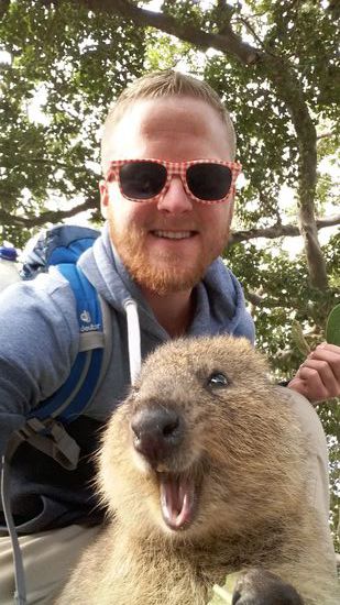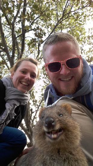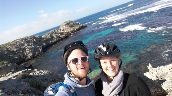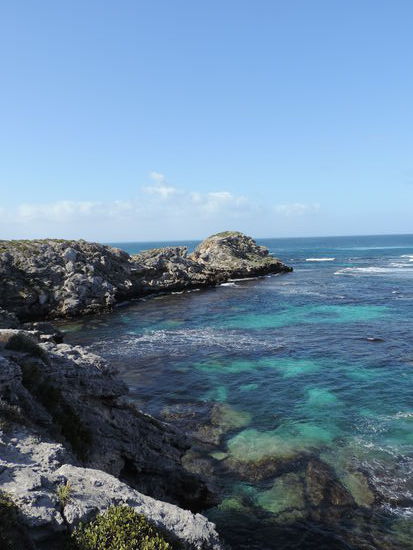 Am Samstagmorgen wurden wir um 8 Uhr am Hostel eingesammelt und zum Hillarys Boat Harbour gebracht, wo wir unsere Fahrräder ausgehändigt bekamen und mit der Fähre rüber nach Rottness Island fuhren. Die Hinfahrt war etwas unruhig und so waren wir alle froh, als wir endlich wieder festen Boden unter den Füßen hatten. Wir radelten fast einmal um die Insel und stoppten immer wieder für Fotostopps. Eine traumhaft schöne Insel! Nur schade, dass es zu kalt zum schwimmen war. Ich bin überzeugt, dass Rottness Island ein Unterwasserparadies ist. So klares und strahlendes Wasser haben wir selten gesehen. Ein weiterer Grund hierherzu fahren, waren die Quokkas, eine Känguruart. So süße Tierchen, die immer aussehen, als würden sie grinsen! Wir schossen wieder einmal tausende Bilder. Einfach großartig! Kurz bevor wir wieder an der Fähre ankamen, kam ich mit meinem Rad Olis Drahtesel gefährlich nah und bremste mit meiner ganzen linken Körperhälfte. Wir versorgten die blutenden Stellen kurz, schon mussten wir zurück auf sie Fähre. Das Wetter hatte sich verschlechtert. Der Wind hatte etwas aufgefrischt und die Wellen kamen schon erstaunlich hoch am Strand an, aber die Rückfahrt war halb so schlimm wie die Hinfahrt und auf garkeinen Fall so schlimm, wie angekündigt. Wir brachten die Fahrräder zurück und wurden wieder am Hostel rausgelassen.