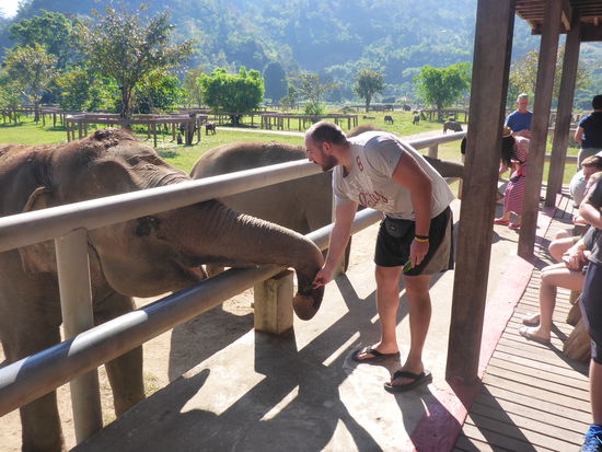 Der Elephant Nature Park kümmert sich um verwahrloste Elefanten, die in Elefantencamps misshandelt wurden oder durch Landminenunfälle ein Teil Ihres Fußes verloren haben. Den Tieren geht es dort echt gut. Man wird von Chiang Mai mit dem Van in das Camp gefahren auf der ca. 60-90 minütigen Fahrt bekommt man einen Kurzfilm über das Camp gezeigt. Dort angekommen durften wir auch direkt die Dickhäuter füttern, mit Wassermelone, Kürbis oder Bannanen. Danach zeigte uns der Tourguide Thom die verschiedenen Elefantenherden und erzählte uns etwas über die Vergangenheit der Tiere. Dabei machte er nochmals aufmerksam, dass das Elefantenreiten mit Sitz definitiv nicht gut für die Tiere ist, da der Sitz nach Jahren des Elefantenreitens den Rücken/ Nacken des Elefanten zusammendrückt und somit bleibende Schäden am Tier entstehen. Nun war auch schon Lunch Time und wir bekamen ein leckeres vegetarisches Buffet. Ich muss echt eingestehen, das Tofu war weltklasse.