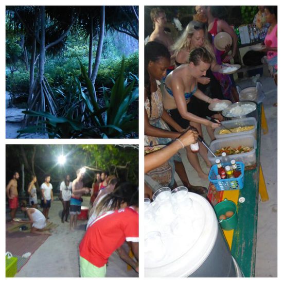 Als es dann dunkel wurde gegen 18:30 Uhr gab es Abendessen. Es gab Reis mit Hühnchen Koskusnussmilch und Gemüse, das Essen war echt lecker. Danach hatten wir Zeit bis 21:30 Uhr für uns, man konnte entweder mit den andern zusammen spielen (wie vier gewinnt) oder den tollen Sternenhimmel am Strand beobachten. Schade das man es nicht auf einem Bild einfangen konnte. Und gegen 20 Uhr gab es noch einmal was zu essen, diesmal gegrilltes Hühnchen.