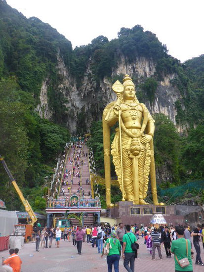 Nachdem wir relativ lange unterwegs waren haben wir erstmal ausgeschlafen und uns gegen 14 Uhr aufgemacht die Batu Caves zu besuchen. Diese erreicht man mit der blauen Linie von KL Sentral aus in ca. 40 Minuten. Dort muss man dann viele Treppenstufen hochlaufen. Das eigentliche Highlight ist die 45 minütige Tour durch die ,,Dark Cave"
