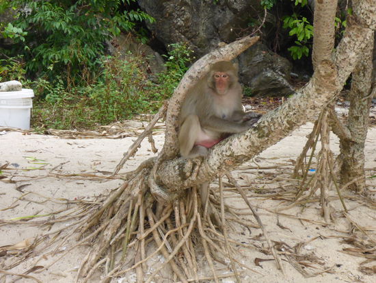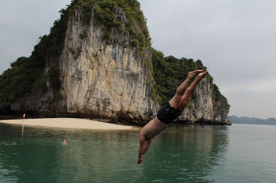 Da wir heute mit dem Flieger nach Ho Chi Minh City fliegen, nutze ich die Zeit am Flughafen um euch von unserem gestrigen Trip in die Halong Bucht zu berichten. Die 1-Tagestour haben wir am Vortag für 15€ p.P. gebucht. Um 8 Uhr wurden wir am Hotel in Cat Ba mit dem Bus abgeholt und zu einem kleinen Hafen gebracht, von dem die Ausflüge starten. Auf dem sehr langsamen Boot ging es als erstes auf Monkey Island, eine kleine Insel auf der kleine Äffchen leben. Anders als in Thailand sind diese noch etwas scheuer und trauten sich nur vereinzelnt in die Nähe der Besucher. Ebenfalls kann man auf der Insel auf einem teilweise abenteuerlichen Weg auf einen Berg hochsteigen (klettern). Festes Schuhwerk wäre zu empfehlen wir beide hatten es mit Flip Flops nicht einfach an manchen Stellen.