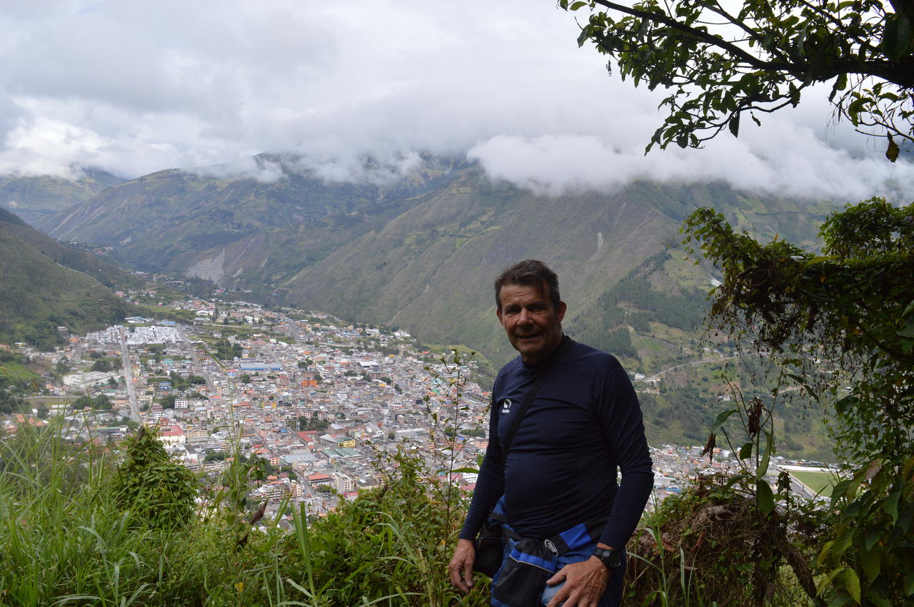 auf halber Höhe am sendero Bellavista. Wie gemalt liegt Banos unten im Talkessel.