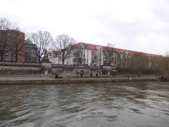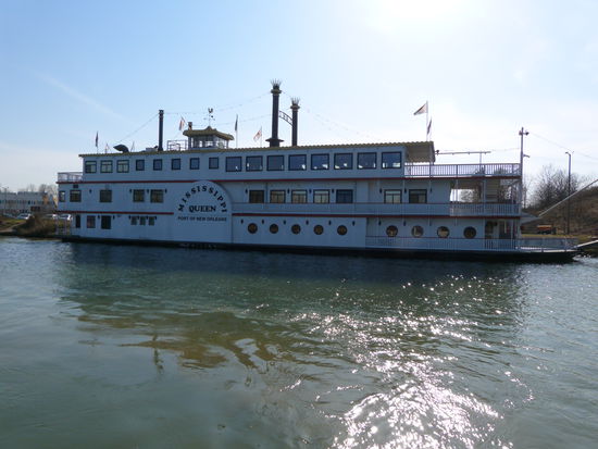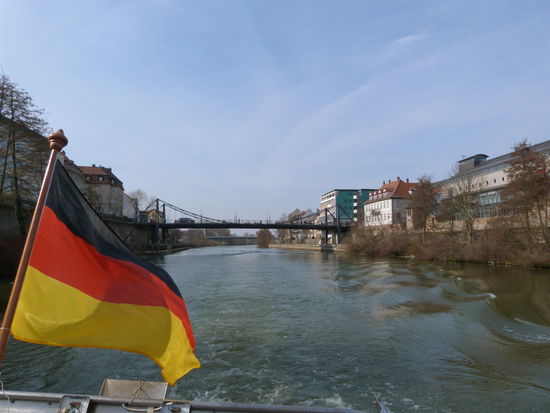 Doch jetzt ist es geschafft. Wir sind in der schönen, blauen  Donau.  Schön  wird sie ja noch, aber blau? Höchstens für Farbenblinde.