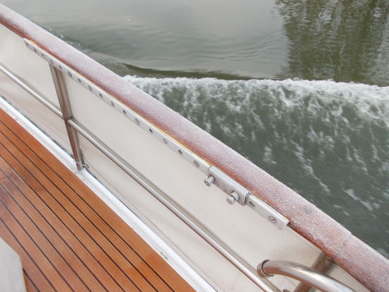 Wir starten, trotz der frühen Jahreszeit, bei strahlendem Sonnenschein. Doch es ist eisig kalt. Das ganze Boot ist mit einer dicken Reifschicht überzogen. Das Deck ist spiegelglatt.  Auf den Windschutzscheiben blühen Trilliarden von Eisblumen.