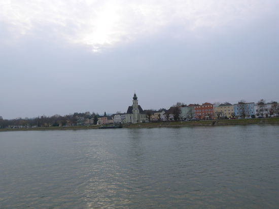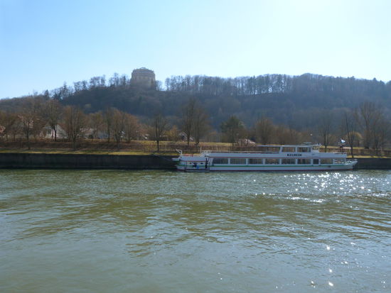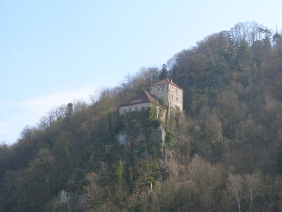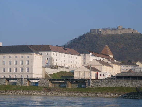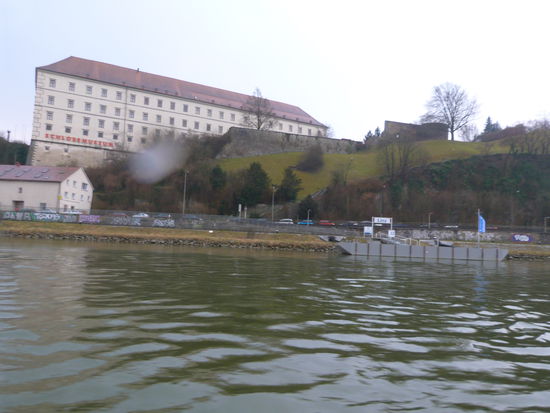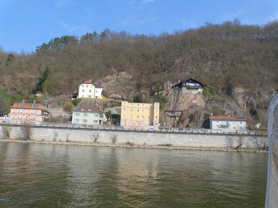 Hier beginnt das „Passauer Tal“ der Gebirgsdurchbruch der Donau. Die Fahrt ist nicht besonders spannend. Rechts und links Wald und steile Berge. Wäre natürlich wunderschön, hätten wir Frühling und alles wäre grün, doch so sieht man nur kahle braune Hänge. Die Donau macht hier einige wilde Schlingen. Die Krönung ist natürlich die Schlögener Schlinge, ähnlich der Mosel- oder Saarschleife.