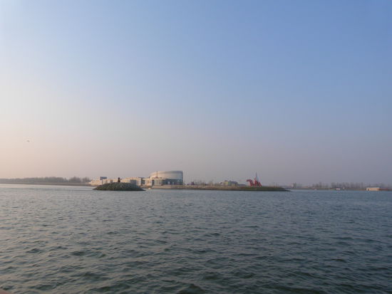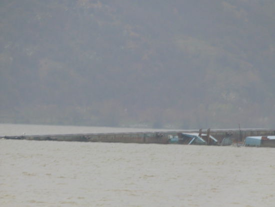 Irgendwo passieren wir das erste Wrack. Ein Frachter, er scheint seitlich gekippt zu sein, das meiste davon ist unter Wasser.