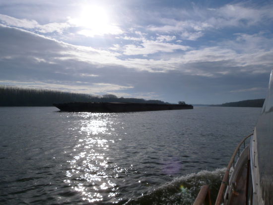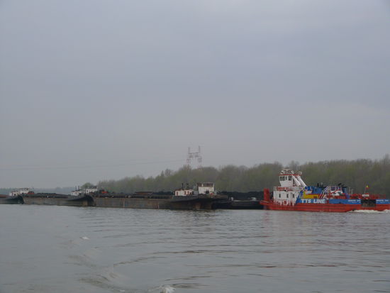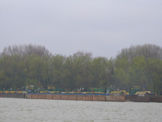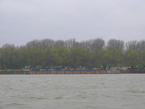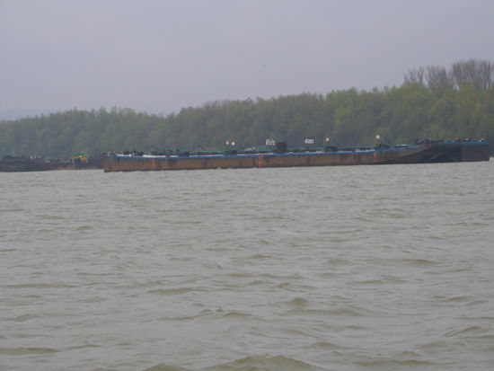 Ein wunderschönes Wassersportgebiet sind die Altarme um Baja. Hier könnte man wirklich einige Tage Pause einlegen. Unterwegs kommt uns ein schwimmendes Fußballfeld entgegen. Vier Leichter nebeneinander, zwei hintereinander und ein Schuber, so groß wie ein Passagierboot.