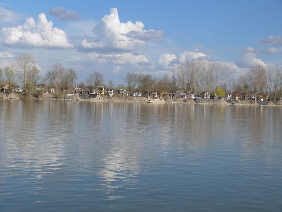 Immer noch ziehen sich Siedlungen am rechten Ufer der Donau dahin, während das linke Ufer nur sandig ist und besetzt mit Gestrüpp.