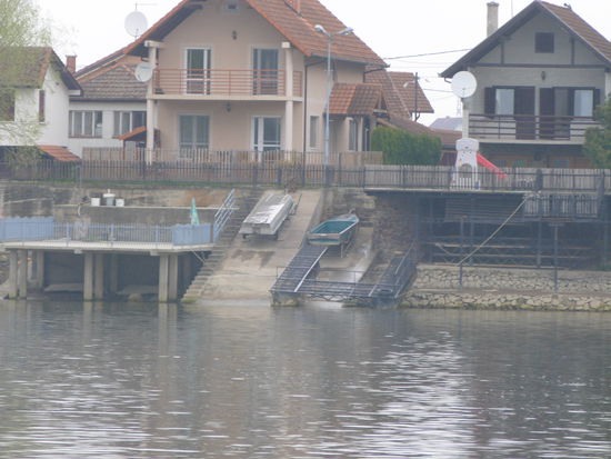 Wir schleichen uns in den Altarm um einen Nachtplatz zu finden. Ehemals war hier Milan’s Treff, eine Institution für alle Donau-Fahrer, doch Stege und Ponton wurden schon vor drei Jahren verkauft und gehören jetzt einem privaten Club. Gegenüber ist immer noch die Anlage von Dodo. Er ist seit 4 Jahren tot. Seine Frau Eli kümmert sich um alles. Wie lange noch, das wusste sie nicht zu sagen. Aus den ehemals armseligen Hüttchen, die das Ärmchen bevölkerten wurden teilweise sehr elegante Datschen. Wir sind schwer beeindruckt.