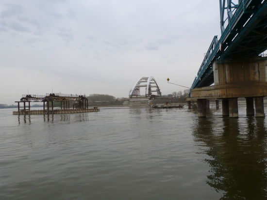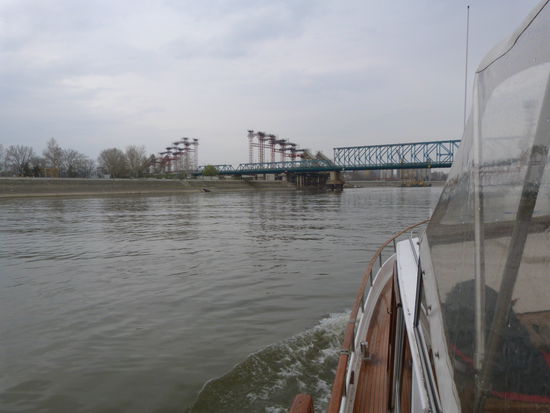 Jetzt fahren wir nur noch in Serbien weiter. Kurze Zeit später erreichen wir die Fruska-Gora, die Frankenberge. Hier war früher eine Hochburg des Glaubens. 17 Klöster waren hier angesiedelt, 15 davon sind heute noch erhalten. Kilometerweit ziehen sich schmucke Häuschen an den Hügeln entlang, während auf der linken Uferseite Katen stehen, die sehr bescheiden anmuten. Vor Novi Sad wird die Bebauung dichter. Hausboote bevölkern die Ufer. Kurz vor der Brücke die Einfahrt in den Yachthafen. Hier hatten wir schon vor 10 Jahren Probleme einen vernünftigen Platz für uns zu bekommen. Trotzdem mussten wir einige Tage ausharren, denn damals war die neue Brücke noch nicht erbaut und die Behelfs-Ponton-Brücke wurde nur alle paar Tage geöffnet. Die Überreste der zerschossenen – von der Nato übrigens – Brücke stehen heute noch im Wasser.