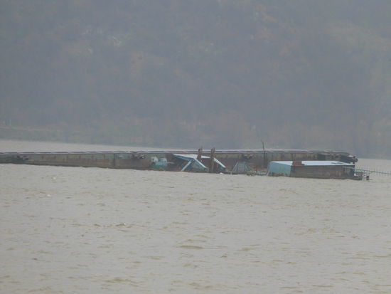 Bei km 1152 liegt rechts von uns der Schiffsfriedhof. Schon vor zehn Jahren sind hier die Ausgedienten, Alten, nicht mehr Benötigten abgestellt gewesen und heute hat sich nichts daran geändert. Dutzende von Frachtern und Leichtern rosten hier still vor sich hin.