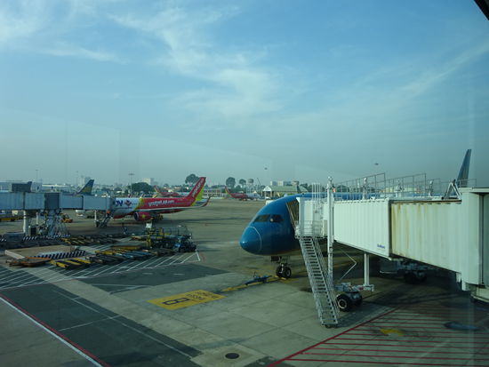 Beides Vietnam Airlines - die hintere Maschine ein Airbus A 350 geht nach Hanoi und mit der vorderen eine Boeing 787 geht es für mich nach Saigon