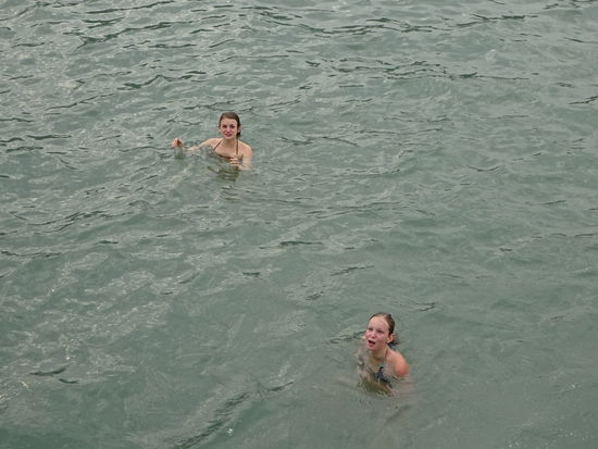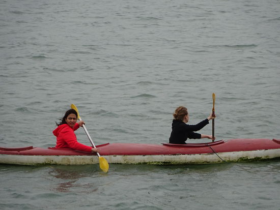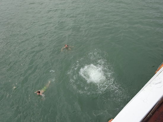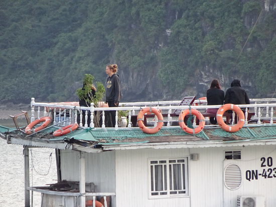 Mädels aus unserer Gruppe an Bord links die kleine Dame aus Holland , in der mitte die Dame aus Kanada und rechts die Dame aus dem indischen Bangalore