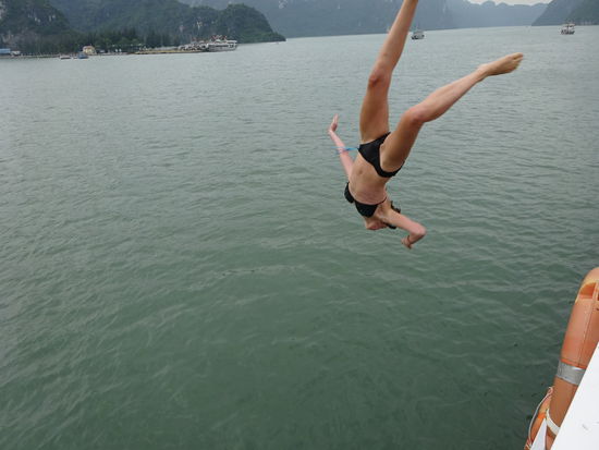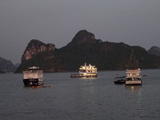 Nach dem Besuch in der Dong Thien Cung Höhle ging es also weiter in der Halong Bucht die sicher zu den bekanntesten Sehenswürdigkeiten in Vietnam gehört und auf keiner Reise fehlen darf. Die meisten Gäste kommen für einen 1 , 2 oder auch 3 tägigen Ausflug aus Hanoi wo die Touren auch gebucht werden. Man kann aber sicher auch selber mit einem Bus zur Halong Bucht fahren und dort vor Ort ein Ticket kaufen. Bei meiner Tour waren im Preis die Transfers , der Eintritt in der Dong Thien Cung Höhle , die Übernachtung , die Mahlzeiten und ein Ausflug mit den Paddelbooten mit enthalten . Unter dem Strich hat mir die Tour trotz des Ärgers über den zu hohen Preis dann aber doch sehr gut gefallen zumal auch das Wetter bei ca. 23 Grad und nur leichter Bewölkung mitgespielt hat. Man sollte aber schon nach Möglichkeit darauf achten ein halbwegs sicheres Boot zu bekommen denn in den vergangenen Jahren gab es immer wieder schwere Unfälle bei denen auch mehrere internationale Gäste Ihr Leben verloren haben. Seit dem Jahr 1994 gehört die Halong Bucht zum UNESCO WELTNATURERBE !!