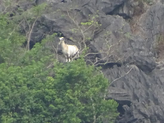 Hier testete ich mal den Zoom meiner Kamera und siehe da das Ergebniss kann sich sehen lassen . Bergziege auf den Karstfelsen der Halong Bucht .