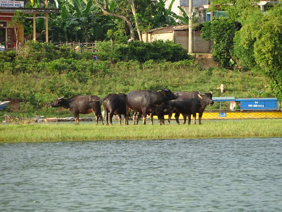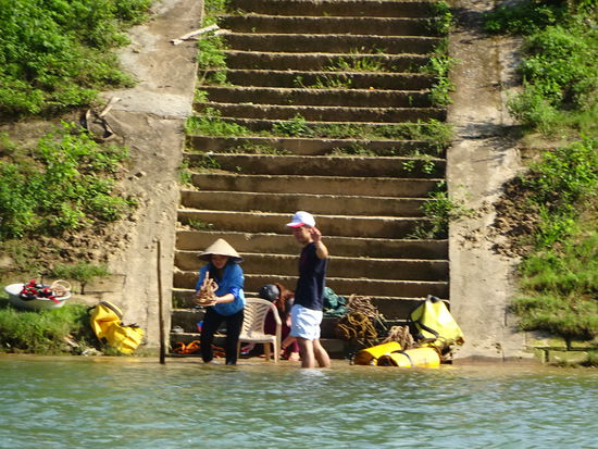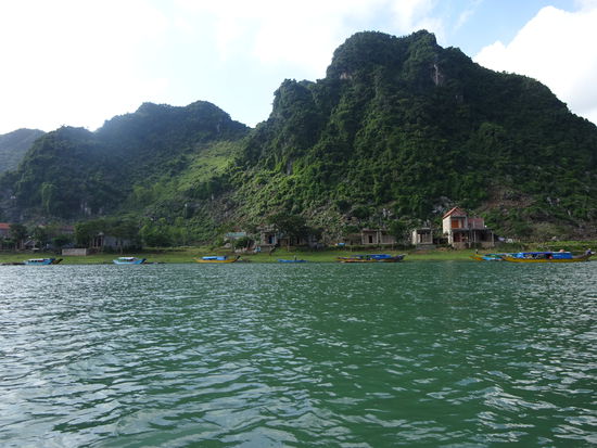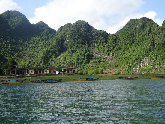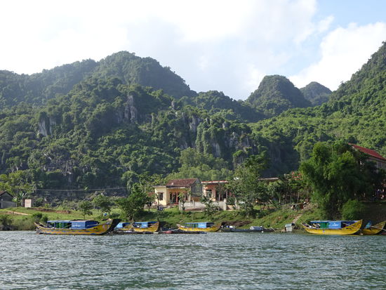Gleich hinter dem Restaurant warten schon die Boote um uns zur Phong Nha Höhle zu bringen