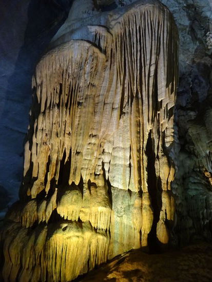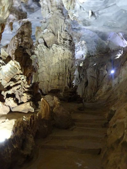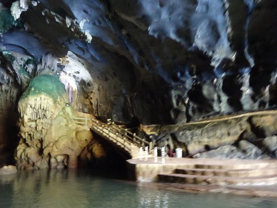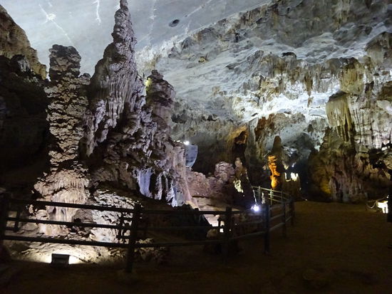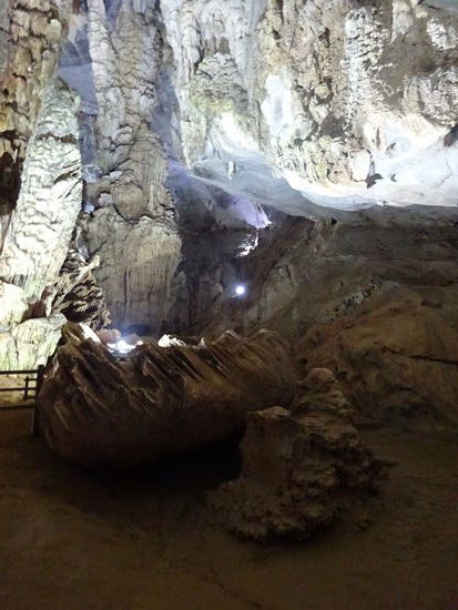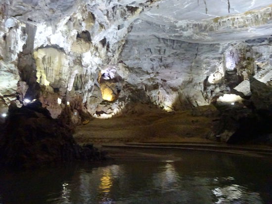 Nach dem ich gestern schon im Reisebüro erfahren habe das die Preise für die Touren in den Phong Nha - Ke Bang Nationalpark direkt an der Laotischen Grenze nicht sehr viel unter denen lagen die ich auch in meinem Hotel bekommen würde buchte ich bei mir im Hotel . Für die Tagestour in den Nationalpark mit seiner Phong Nha und der Thien Duong Höhle ( Paradieshöhle ) inkls. Mittagessen bezahlte ich an der Reception 1050000 VND = 44 Euro . Das Phong Nha Höhlensystem hat eine Länge von mindestens 65 km wobei man nur ein Bruchteil besuchen kann. Schon der Eingang mit seinem " Drachenmaul " ist spektakulär. Der Phong Nha - Ke Bank Nationalpark mit seinen Höhlen gehört seit 2003 zum UNESCO WELTNATURERBE und wurde 2015 erweitert.