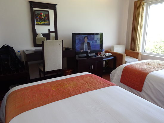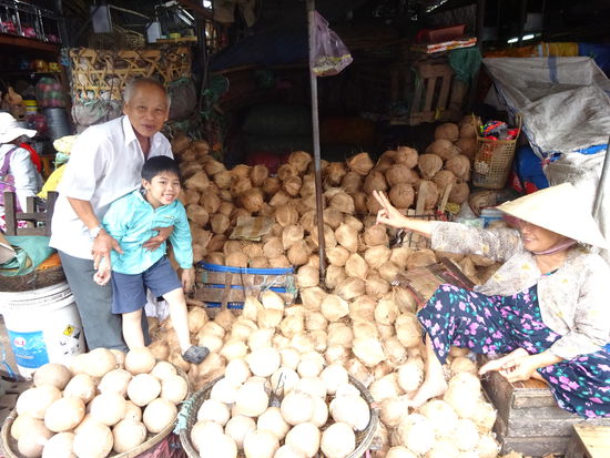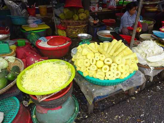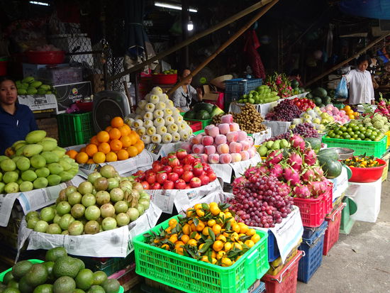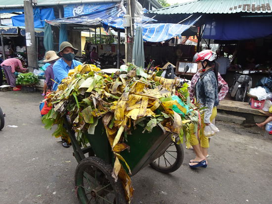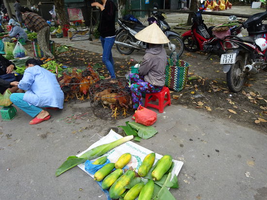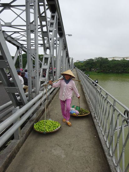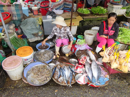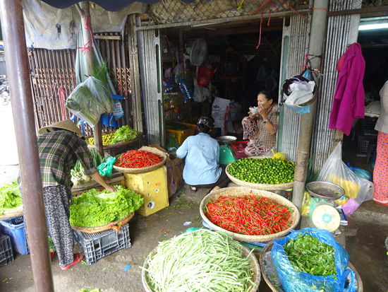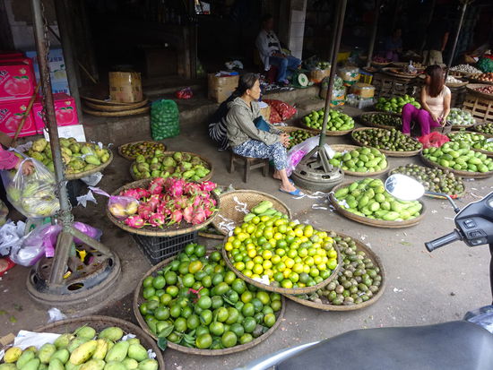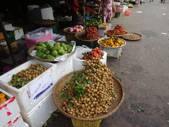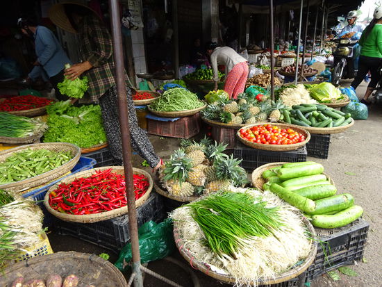 Mit meinem kleinen Minibus den ich in Dong Hoi gebucht hatte ging es also weiter nach Hue was ich nach 4 Stunden Fahrt erreichte. Auch hier fuhr ich erstmal vom Busstop mit einen Mopedtaxi zum meinem Hotel wobei dies sich als sehr schwierig darstellte da das Hotel zwar an entsprechender Adresse exestierte aber nicht mehr der ursprüngliche Name den der Besitzer hatte gewechselt und damit auch der Name des Hotels. Leider wurde ich vom Hotel darüber nicht vorab informiert so das mein Mopedfahrer erstmal 3 mal im Kreis fuhr und schon verzweifelt war bis ich einfach abstieg und zu der Adresse lief um zu fragen wo das Hotel denn sei und dort erklärte mir dann die Situation. Ich war darüber natürlich sehr verärgert was man mir auch deutlich anmerkte und deshalb gab man sich besonders Mühe meine Laune wieder in den positiven Bereich zu lenken denn ich bekam ein Extra Korb mit leckeren Früchten aus der Region und die Chefin persönlich kümmerte sich um mich. Nach dem ich mein wirklich sehr schönes Zimmer bezogen habe und mich etwas ausgeruht hatte unternahm ich meine erste Tour wobei mein Ziel der alte Markt von Hue war.