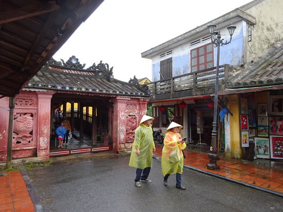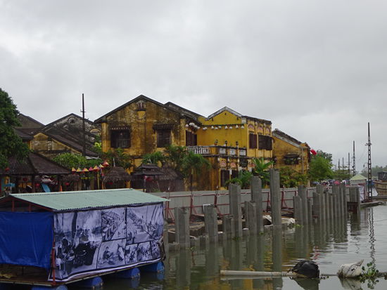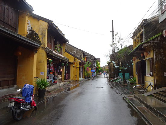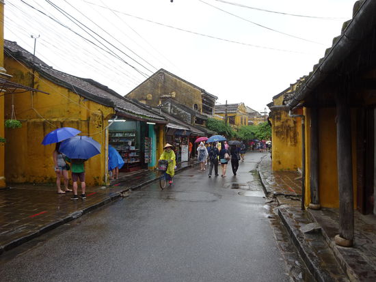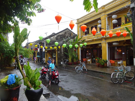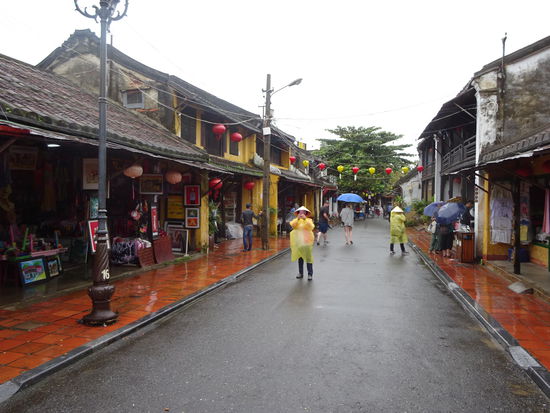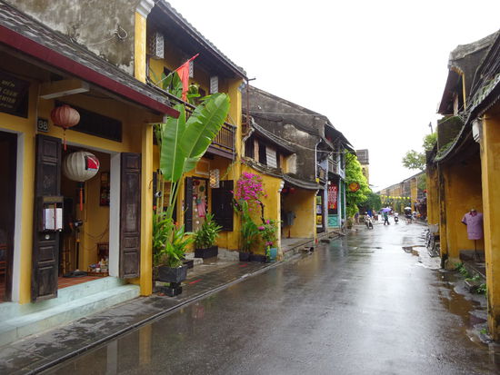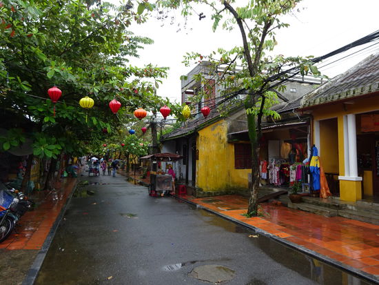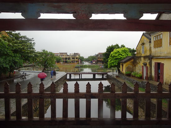 Von der alten Kaiserstadt Hue ging es für mich mit dem Bus weiter über den Wolkenpass nach Hoi An . Der Wolkenpass ist die natürliche geografische Grenze zwischen Nord und Südvietnam. Bis zum 16. Jh. war es auch die Grenze zwischen dem Reich der Viet im Norden von dem auch der Name Vietnam abstammt und dem Reich der Champa im Süden . Die Wetterscheide auf dem Pass verhindert besonders im Winter das die kalten Luftmassen nach Süden vordringen so das besonders in Hue immer wieder zu Regenreichen Tagen kommen kann. Ich mußte allerdings in Hoi An genau das Gegenteil erleben denn nicht etwa in Hue sondern hier regnete es an den ersten beiden Tagen wie aus Kübeln und wollte einfach nicht enden. Der Bus setzte mich genau vor meinem Hotel ab so das ich nur schnell mein Koffer auf Zimmer brachte und mich dann schon zu einem ersten Sparziergang durch Hoi An aufmachte. Um ein Teil der Altstadt mit seinen Museen und Tempeln besichtigen zu können muß man ein Ticket kaufen . Die Gelder davon sollen aber u.a. für den Denkmalschutz eingesetzt werden so das ich es vertretbar finde . Auch wenn in den ersten Tagen das Wetter nicht so mitspielte und die Altstadt doch besonders bei schönem Wetter und am Wochenende sehr von Touristen überlaufen ist war es nach der Altstadt von Hanoi erst das zweite mal das ich von einer Stadt total begeistert war. Seit 1999 gehört Hoi An zum UNESCO WELTKULTURERBE .