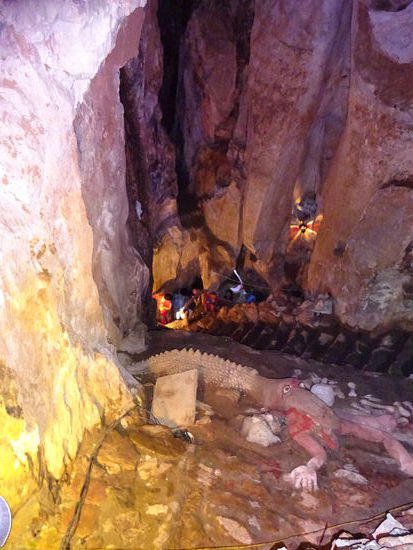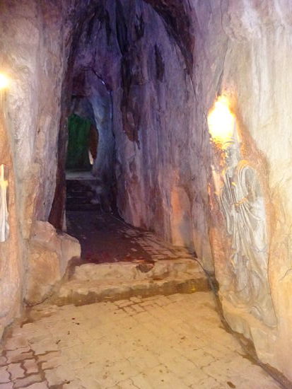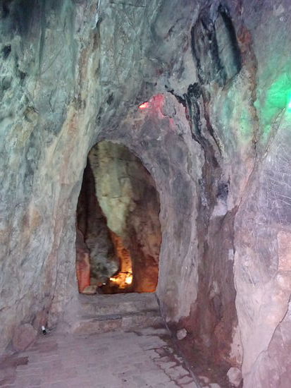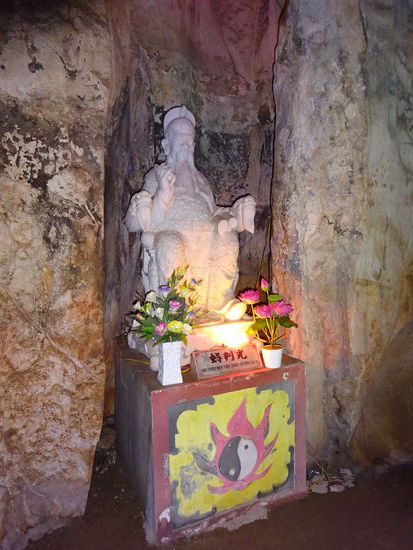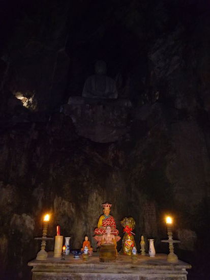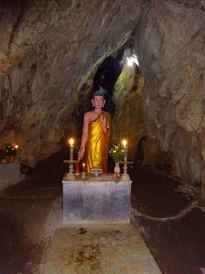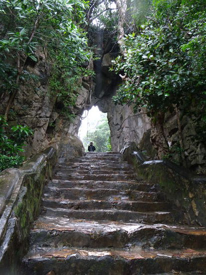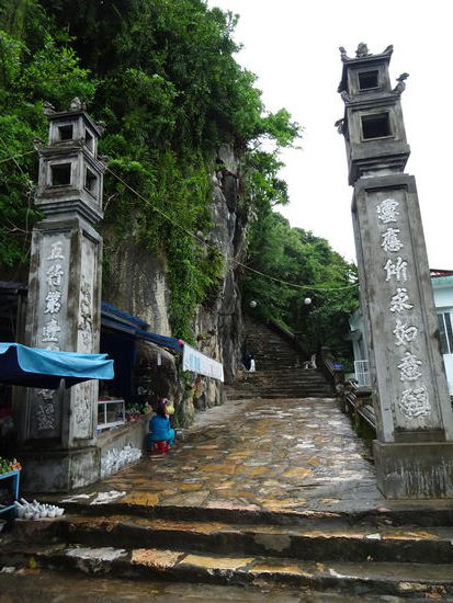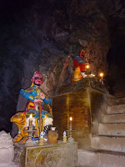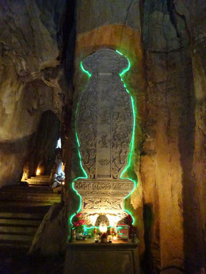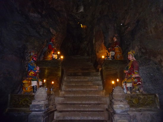 Hinunter geht es in die Huyen Khong Grotte in der bei schönen Wetter die Sonne durch die Krater in der Decke strahlt aber leider hatte ich Pech und konnte dieses Lichterspiel nicht bewundern