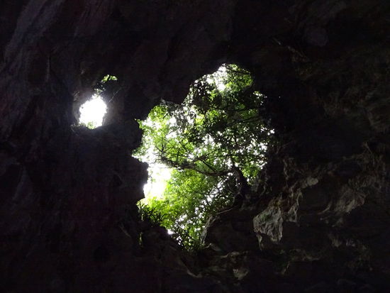 Durch diese Öffnungen scheint bei schönem Wetter normalerweise die Sonne hinab bis zum Boden der Huyen Khong Grotte aber ich hatte Pech